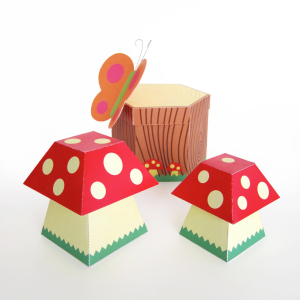 Mushroom and Tree Stump Treat Boxes Printable Paper Craft