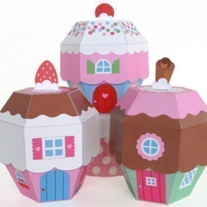 Strawberry, Beehive and Acorn Cottage Favor Boxes Printable Paper Craft