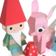 A fun paper craft project you can print from your home computer and make yourself. This 8 page PDF includes fawn, boy and girl gnome and 2 mushrooms. Instructions included.