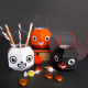 A fun paper craft project you can print from your home computer and make yourself. This 7 page PDF includes 3 treat containers, cat, skull and jack-o-lantern.